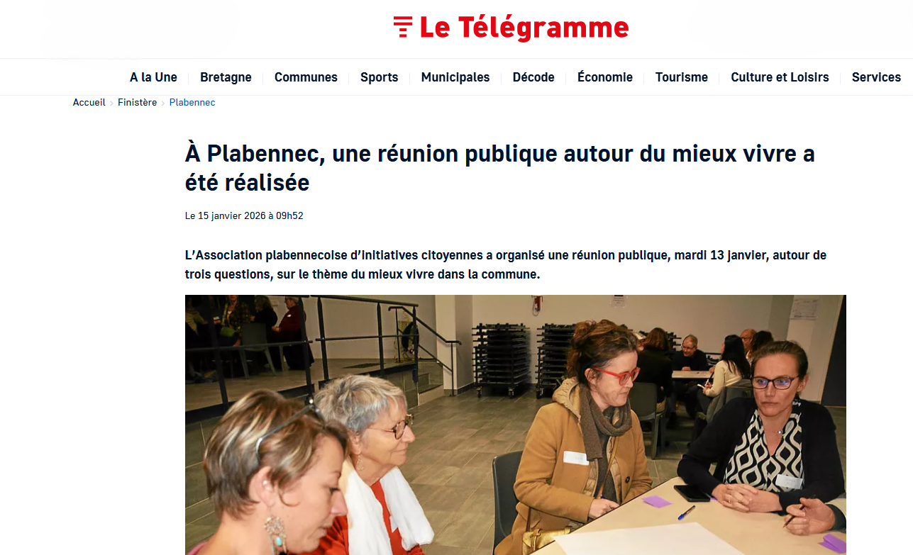 Le Télégramme : À Plabennec, une réunion publique autour du mieux vivre a été réalisée